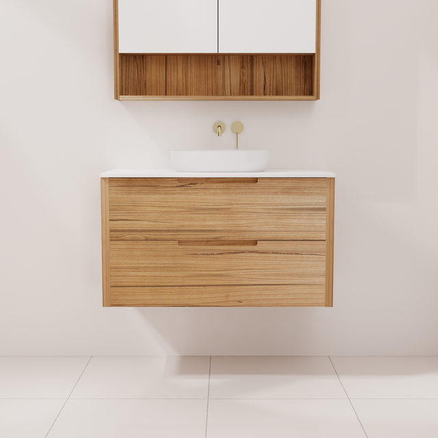 Perfect for all bathroom sizes and styles, our Avila messmate vanity range uses solid messmate timber and is locally made in Melbourne. Messmate is native to the East Coast of Australia and found from southern Queensland all the way through to Tasmania. Its colour varies significantly from pale browns to more golden tones and is often found distressed providing significant character amongst finished pieces of furniture.