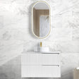 If you don't know, now you know... The Noosa wall-hung vanity is made from plywood giving it greater strength and moisture resistance over a traditional MDF. The three-dimensional vertical grooves in the drawer face provide style and depth to create modern elegance. You have plenty of storage room in this vanity. All sizes come with drawers only except for the 1200mm version which has a cupboard to the side. This allows for easy access to all you items you stored away. A waste cut-out in both the top and bottom drawer allows you to easily run your waste pipe through to the floor if that's where your existing waste is. We don't always stock this item in our warehouse so please check stock or ETA before ordering. Includes Vanity only