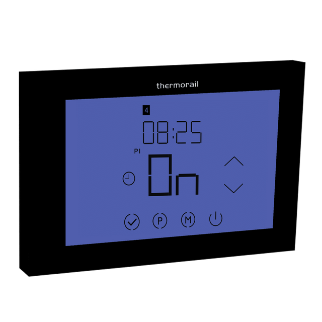 The TRTSLB Thermorail Timer is a black landscape digital touch screen timer ideal for controlling Thermorail Heated Towel Rails. The timer allows you to set a schedule for exactly when your heated towel rail is operating and how long it is on for.