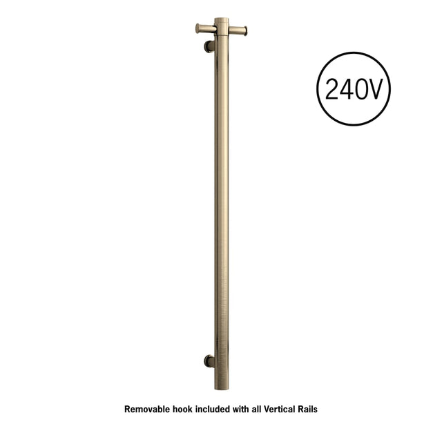 Thermorail - Straight/Round 240Volt Vertical Bar 900x142x100mm 20Watt With Optional Hook - Brushed Brass - 20Watt 240Volt is backordered and will ship as soon as it is back in stock.