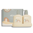 The al.ive baby Hair and Body Duo in Gentle Pear contains a Baby Hair and Body Wash and Body Lotion, both housed in a convenient non-slip tray with easy-to-pump lids. The formula is vegan, cruelty-free, and palm oil-free, and contains naturally derived ingredients that are gentle on the skin.
