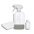 Our design-inspired kit features a 450ml Refillable Bottle, Bottle Station & Connector, 50ml Cleaning Concentrate, and Microfibre Cloth expertly designed for streak free glass and mirrored surfaces.