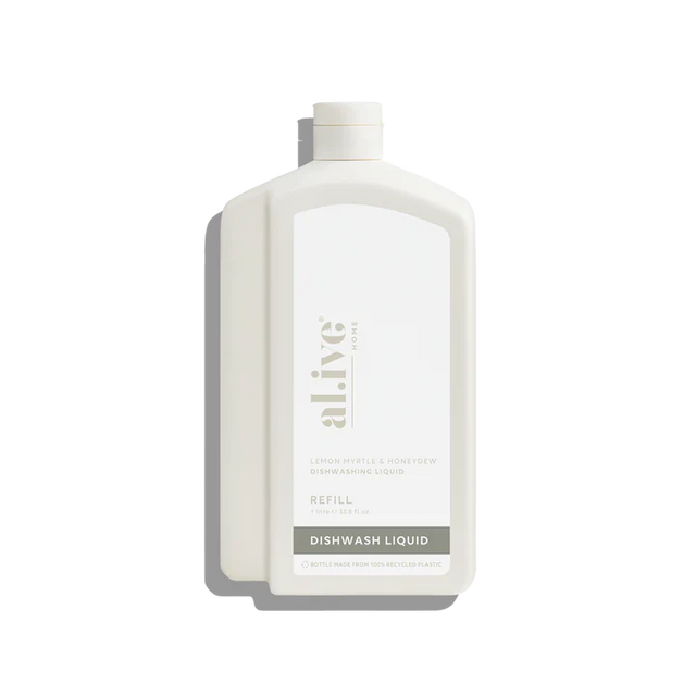 Each refill is designed to refill the 300ml al.ive body Dish Wash bottle over three times. With a controlled-flow spout for mess-free pouring, compact shape for easy storage, and full kerbside recyclability, it offers a practical, premium solution while extending the life of the product you already love.