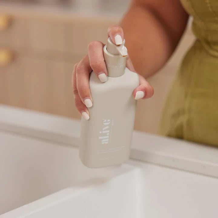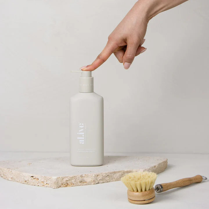 The al.ive body Lemon & Pomegranate Dishwashing Liquid uses naturally-derived ingredients to dissolve even the toughest residues, whilst being gentle on skin. 1-2 pumps is all that is needed to clean a sink full of dishes, the premium formula working hard to shift stubborn grease and grime.