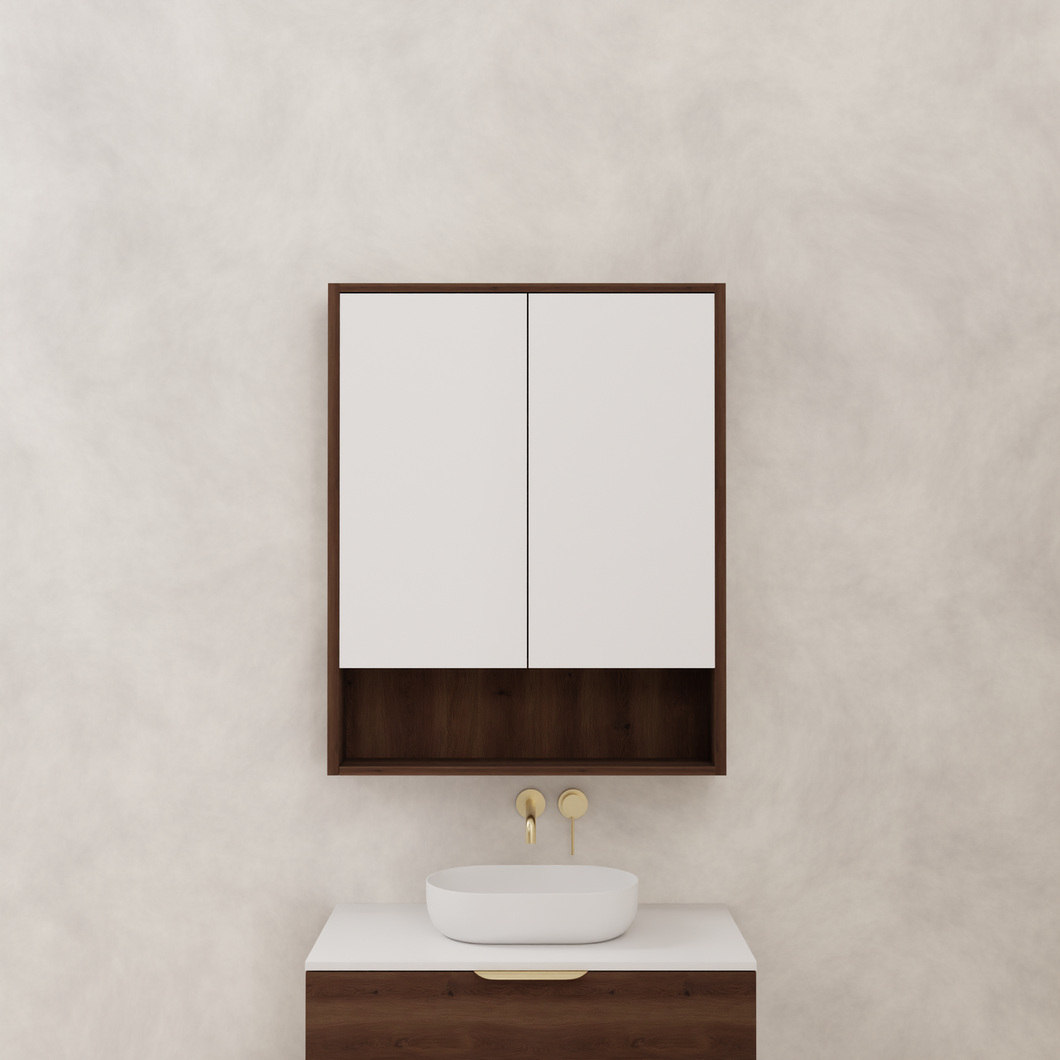 The Carini Shaving Cabinet in Chestnut adds a touch of natural elegance to your bathroom.