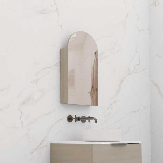 Bring a natural, classic appeal to your bathroom with the Arka Mirror Cabinet in Smoked Ash.