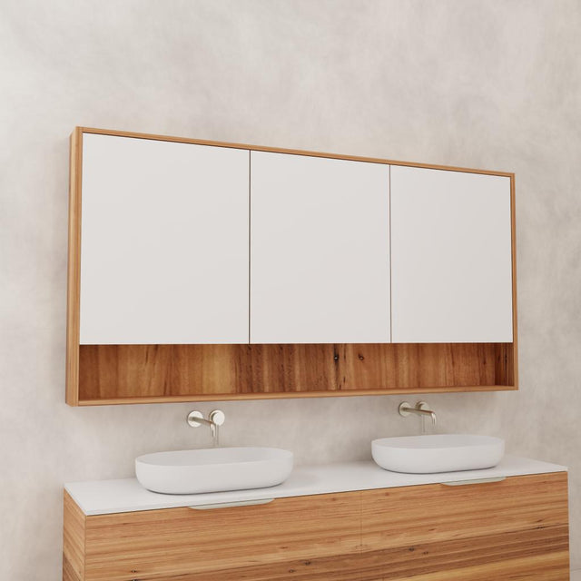 The Carini Shaving Cabinet in Blackbutt is perfect for a sleek and modern bathroom aesthetic.