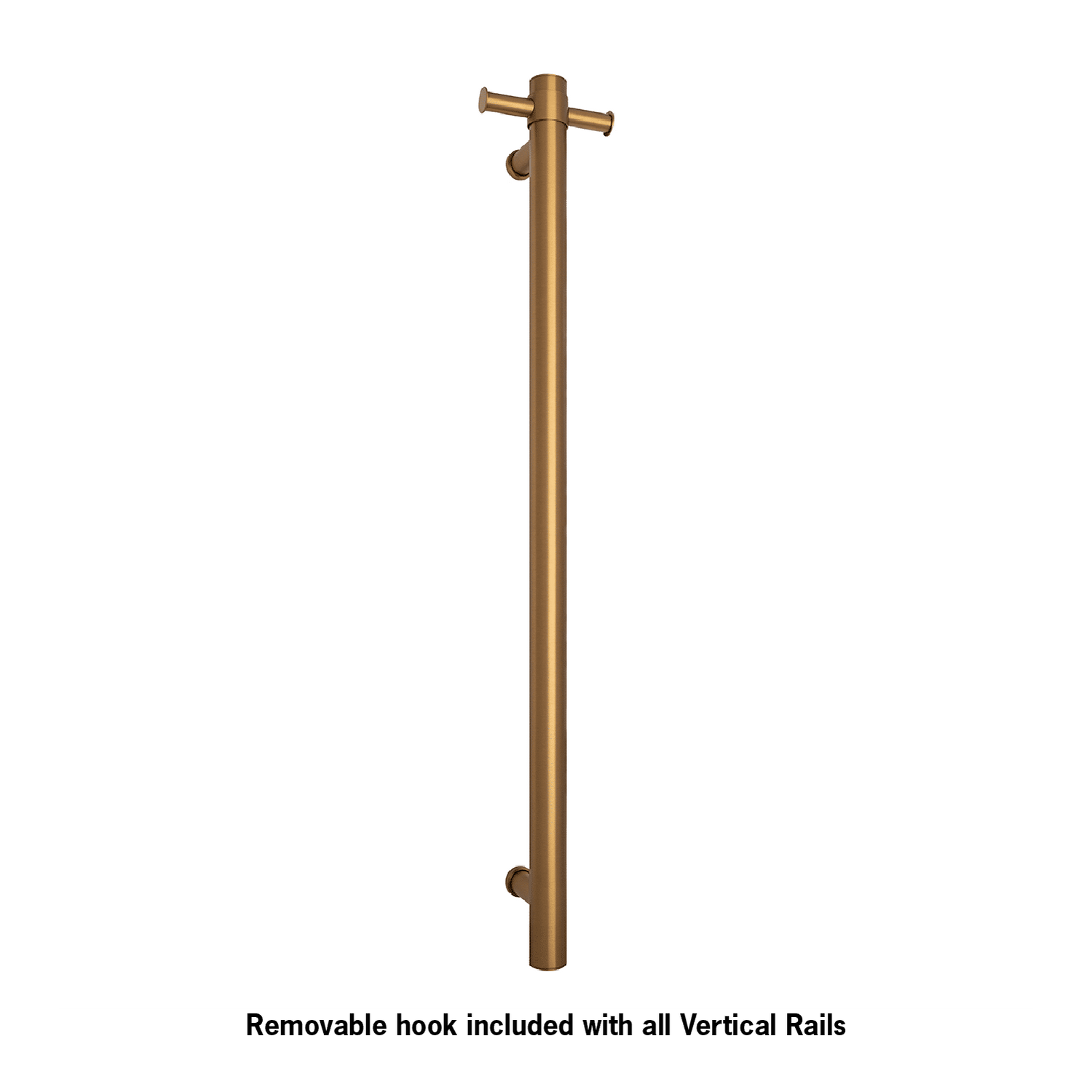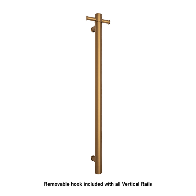 Thermorail - Straight/Round 12Volt Vertical Bar 900x142x100mm 22Watts With Optional Hook - Brushed Gold - 22Watts 12Volt is backordered and will ship as soon as it is back in stock.