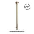 Thermorail Straight/Round 240Volt Vertical Bar 900x142x100mm 20Watt With Optional Hook Brushed Brass
